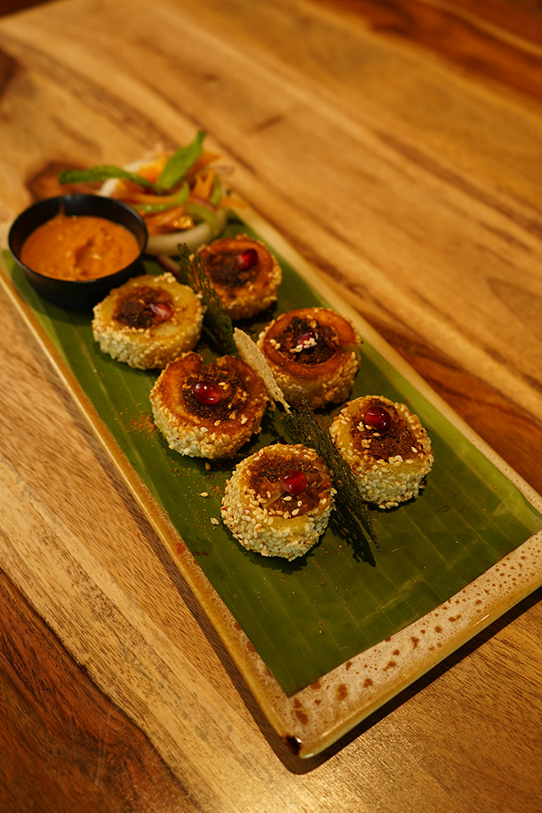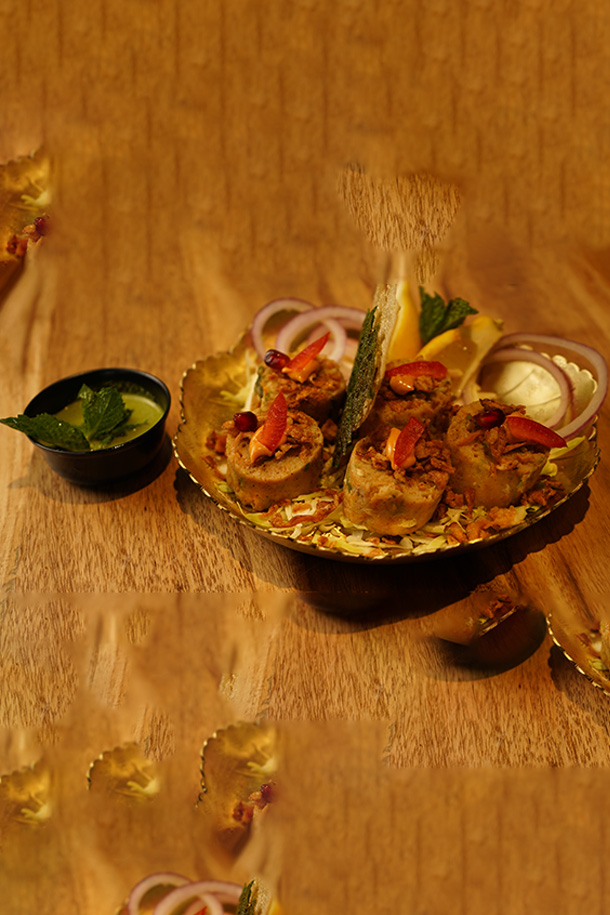 Minced Goat, Indian Spices and herbs, rolled in Rumali Roti